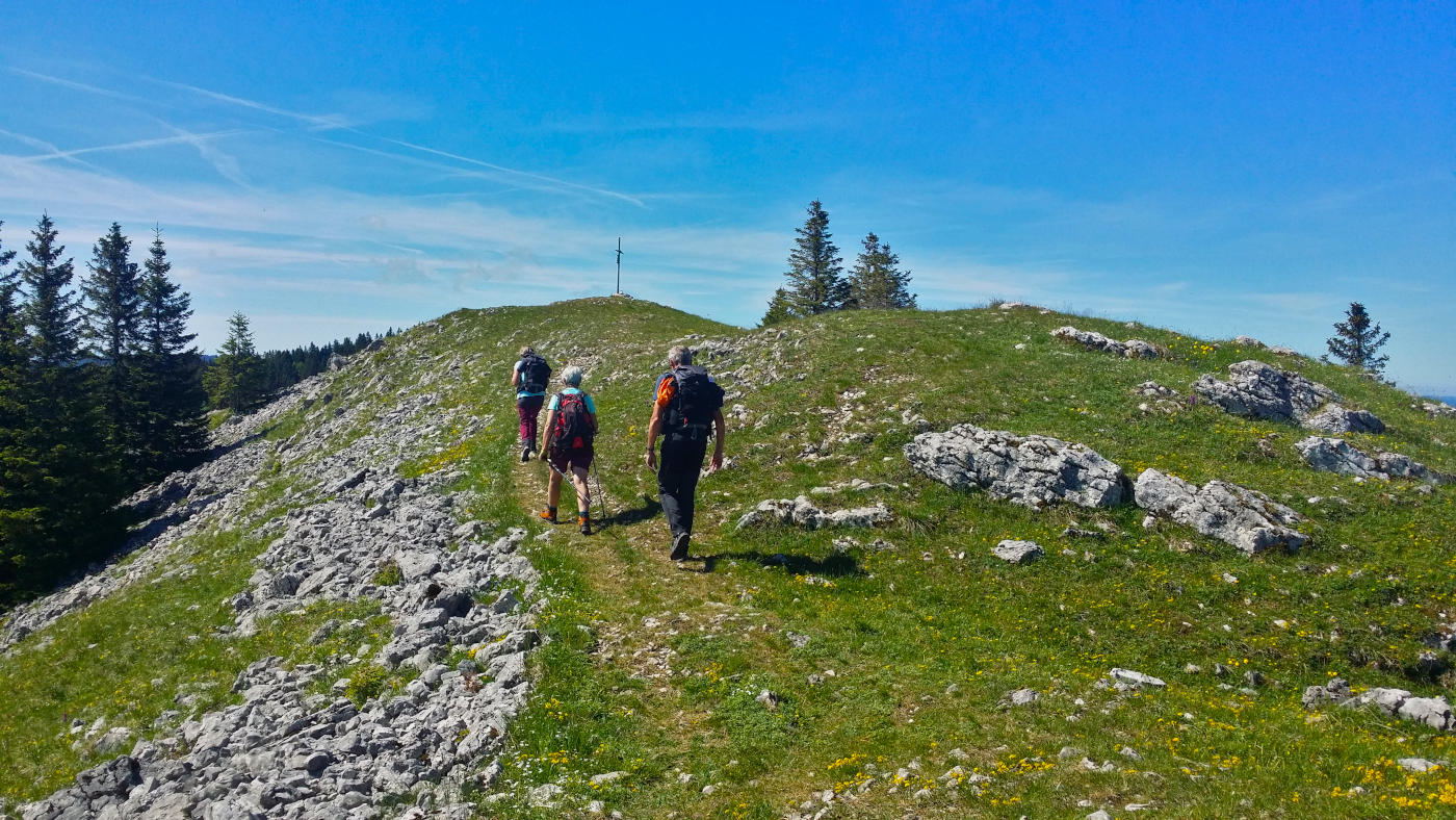 Cette randonnée démarre en France pour monter à la Dôle situé en Suisse. Depuis les forêts d'épicéas, le parcours gagne en altitude à travers les pâturages. Une vue magnifique récompense l'arrivée au sommet helvète à 1678 mètres d'altitude. Le retour se fait sur un sentier plus confidentiel par les pâturages fleuris.